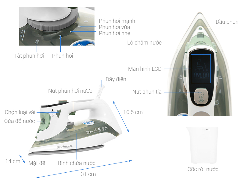 Bàn ủi hơi nước BlueStone SIB-3879 kiểu dáng nhỏ gọn, màu sắc trang nhã, công suất lớn 2020W – 2400W