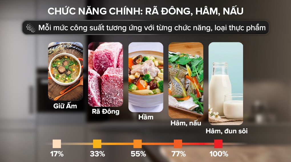 – Với công suất vi sóng tối đa 800W, được chia làm 5 mức (thấp – rã đông – trung bình – trung bình cao – cao), lò vi sóng Toshiba này giúp nấu, hâm nóng, rã đông nhanh chóng, tiện lợi.