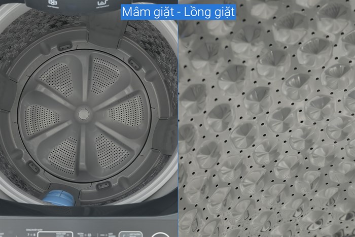 – Đặc biệt, lồng giặt được thiết kế có các gờ hình ngôi sao pha lê để các lỗ nhỏ dẫn nước len lỏi vào lồng giặt nhằm tác động lên quần áo, nhờ đó tăng 5% hiệu quả giặt sạch và lưu trữ hương thơm lâu dài.