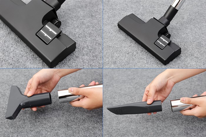Đầu hút 2 bước giúp vệ sinh hiệu quả ở mọi ngóc ngách, thuận tiện với các đầu hút khe và màn bọc đi kèm