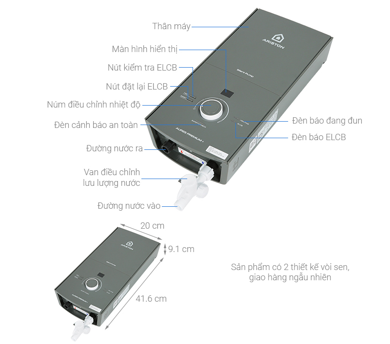 – Máy nước nóng trực tiếp Ariston thiết kế vuông vức các cạnh trên, ở cạnh dưới được làm bo cong nhẹ theo hình vòng cung cho thiết kế mềm mại, thanh lịch. Tông màu đen – xám sang trọng tô điểm cho không gian phòng tắm trông cao cấp, thời thượng hơn.