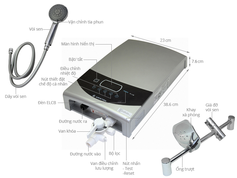 Chiếc máy nước nóng trực tiếp Ariston được trang bị cầu dao chống rò điện ELCB sẽ góp phần bảo vệ an toàn cho cả gia đình bạn nhờ khả năng ngắt điện kịp thời khi phát hiện sự cố rò rỉ.