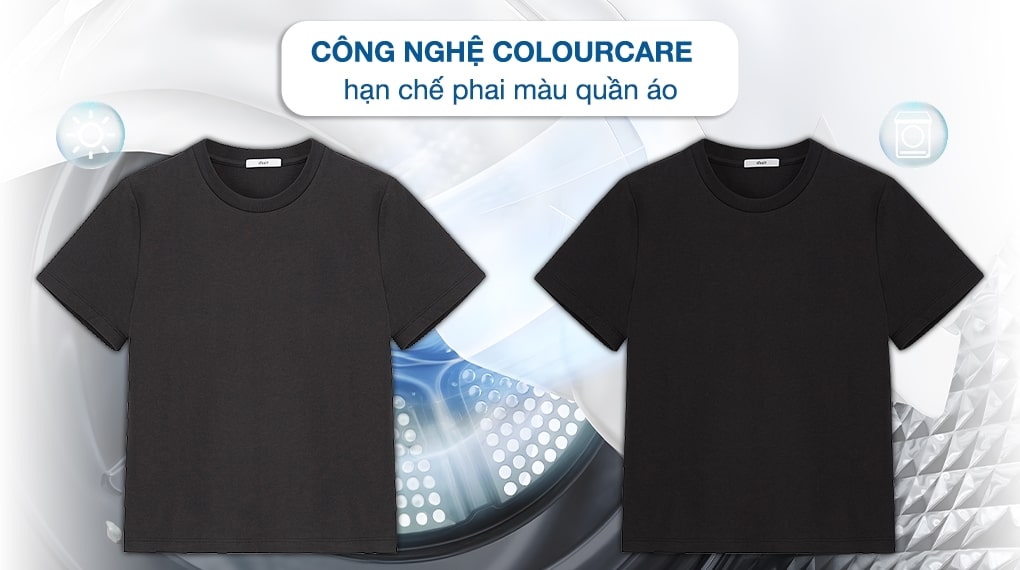 – Công nghệ ColourCare giúp giảm phai màu quần áo, giữ được màu sắc ban đầu sau nhiều lần sấy hơn so với phơi khô đồ theo cách thông thường.