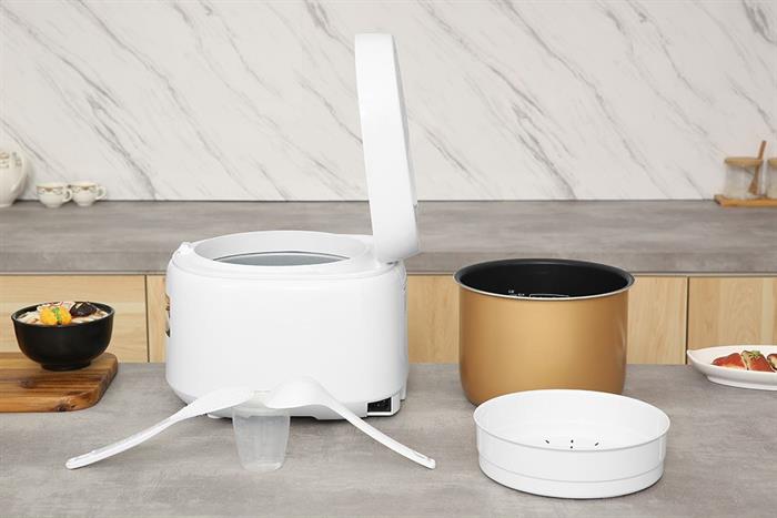 – Bộ phụ kiện đi kèm gồm: xửng hấp, muỗng cơm, muỗng canh và cốc đong tiện lợi.