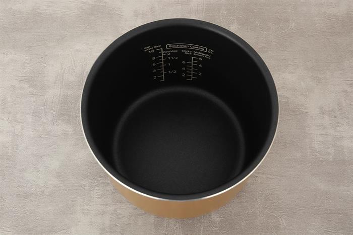– Lòng nồi dày 2.4 mm, được cấu tạo 5 lớp bền bỉ với nhôm là chất liệu chính, bên trong phủ thêm lớp chống dính Binchotan cao cấp giúp dẫn nhiệt tốt, chống bám dính và dễ vệ sinh sau khi sử dụng.
