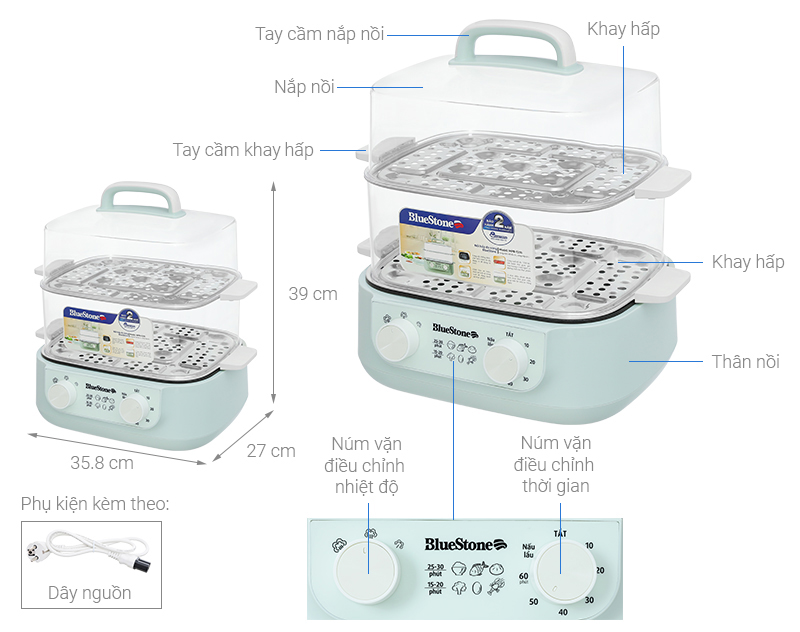 – Nồi lẩu hấp đa năng BlueStone có thể chế biến được đa dạng các món hấp, nấu lẩu, nấu cháo, xào,…