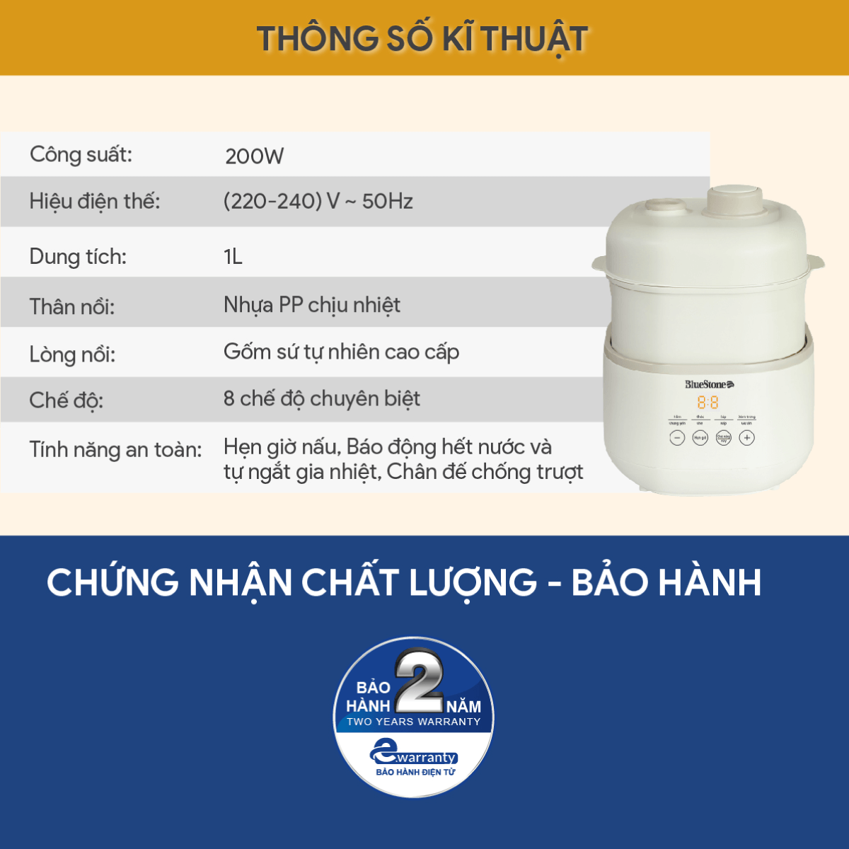 NỒI NẤU CHẬM BLUESTONE SCB-6119 1 LÍT 200W