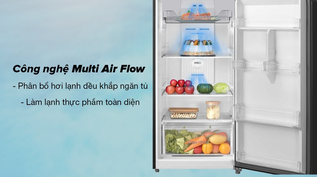 – Luồng khí lạnh đa chiều Multi Air Flow: Hơi lạnh được phân bổ đều khắp mọi vị trí bên trong ngăn tủ, nhờ đó hỗ trợ làm lạnh thực phẩm toàn diện cũng như giảm thiểu tình trạng hư hỏng thực phẩm do không đủ độ lạnh.