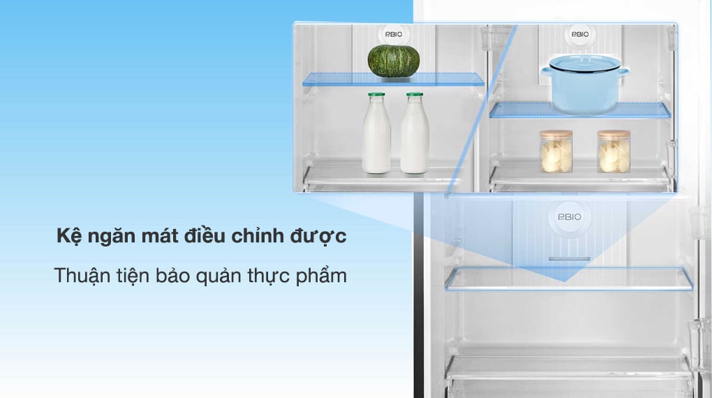 Kệ ngăn mát điều chỉnh được: Bạn có thể điều chỉnh được độ cao của kệ ở phía dưới ngăn mát, nhờ đó thuận tiện cho việc bảo quản thực phẩm có kích thước lớn.