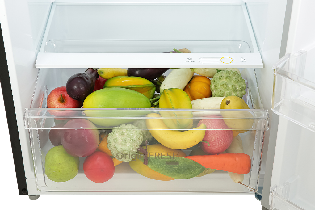– Ngăn rau quả Origin Fresh: Bạn có thể gạt nút để tùy chỉnh độ ẩm từ 60% – 80%, giúp nhóm rau củ và trái cây được bảo quản tối ưu với độ ẩm thích hợp. Vì thế, thực phẩm sẽ duy trì được độ tươi ngon và chất dinh dưỡng tốt hơn.